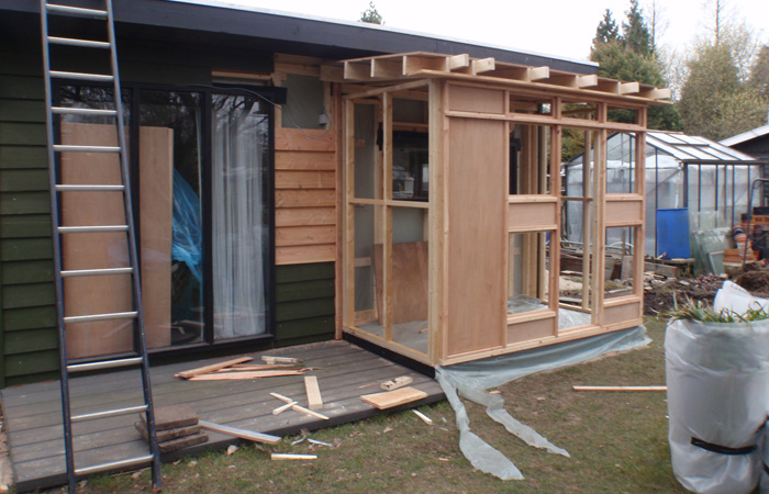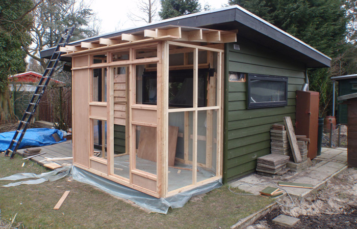 Wij willen graag een extra kamertje aangebouwd hebben aan ons tuinhuis op de volkstuinvereniging. Het moet in dezelfde stijl zijn. Verder willen wij graag een pergola aan de zijkant van het tuinhuis.