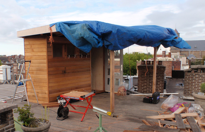 Bouw van een bovenuitgang naar het dakterras op het dak van ons bovenhuis, zodat wij op het dak van het mooie weer kunnen genieten.