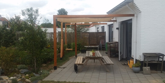 Houten pergola met schaduwdoek Gallery Houten pergola met schaduwdoek Afdak, Pergola Houten pergola met schaduwdoek Afdak, Pergola Samen werken met hout2025-07-02T12:23:35+02:00 Leer meer